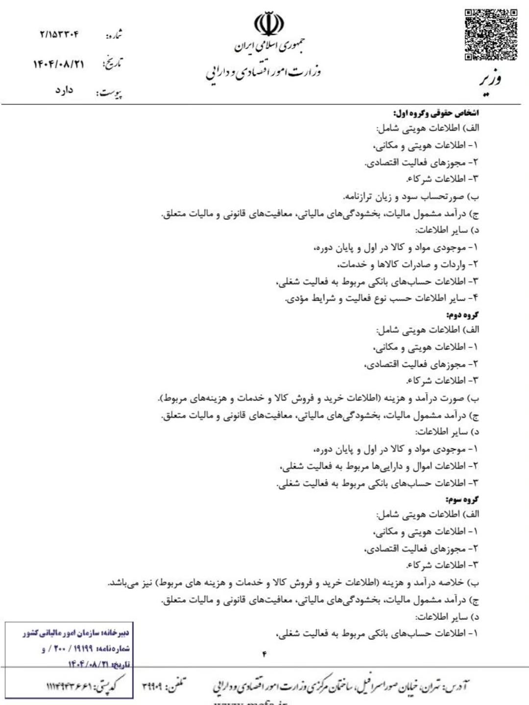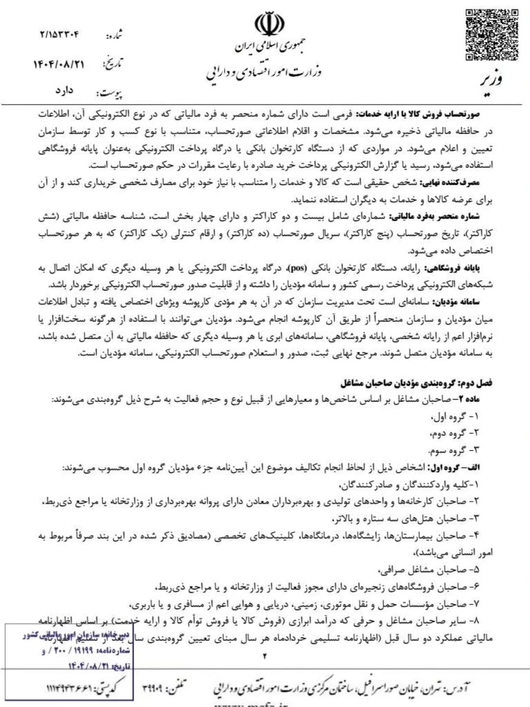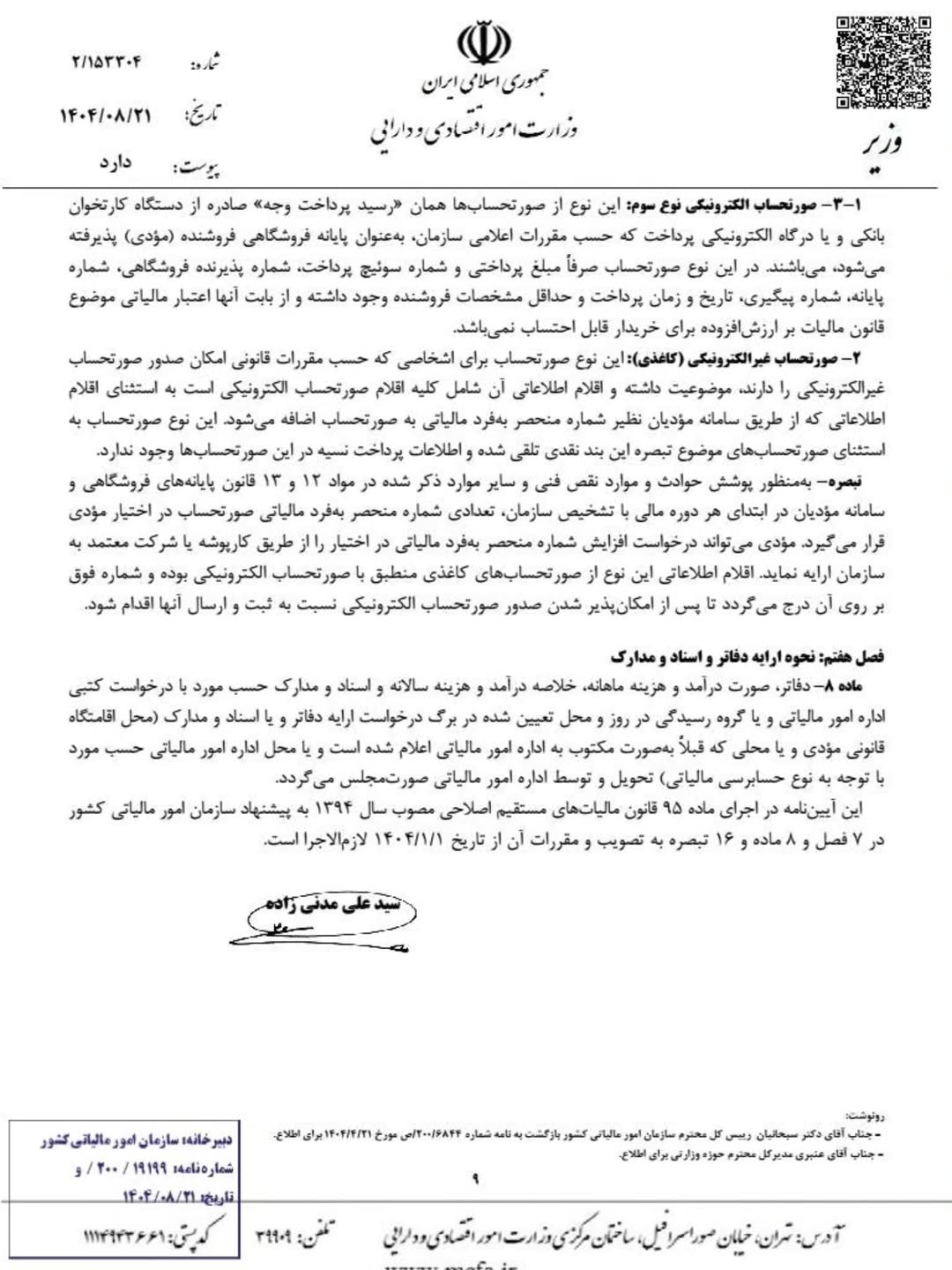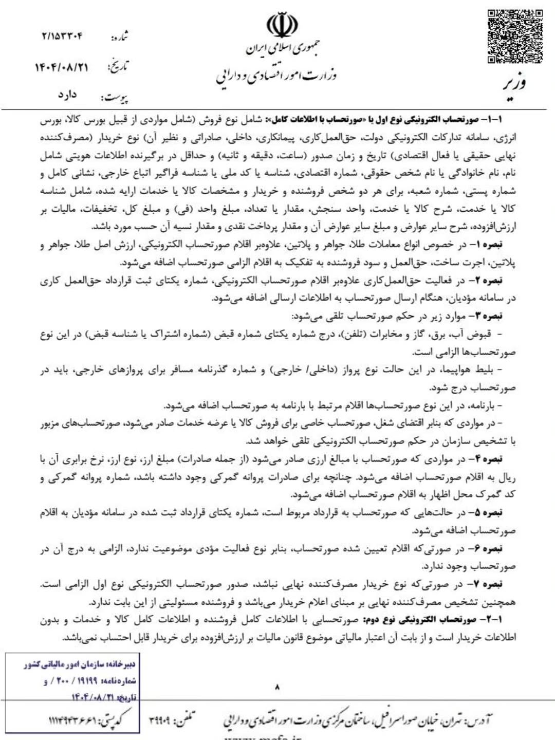 آیین نامه جدید تحریر دفاتر قانونی منضم به دفاتر الکترونیکی مصوب 1404/08/21