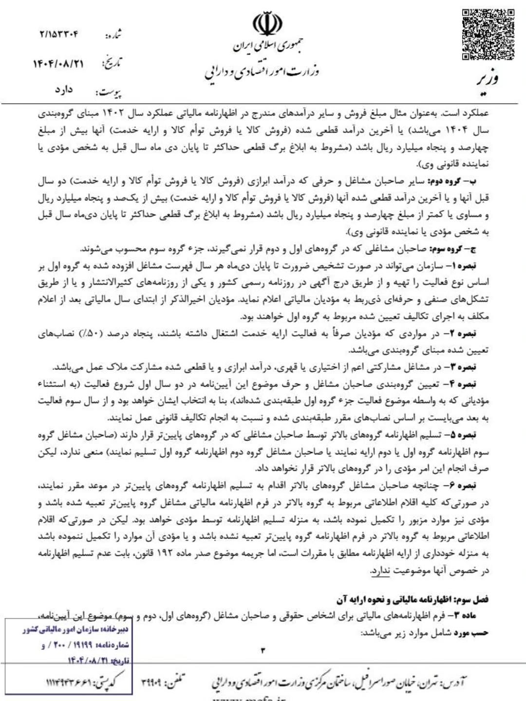 تبصره 100 و اظهار نامه حقیقی